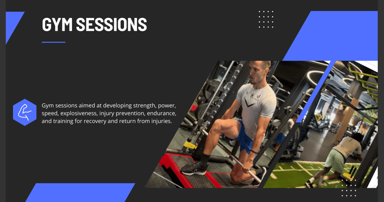 Gym sessions aimed at developing strength, power, explosiveness, injury prevention, endurance, recovery and return to play strategies